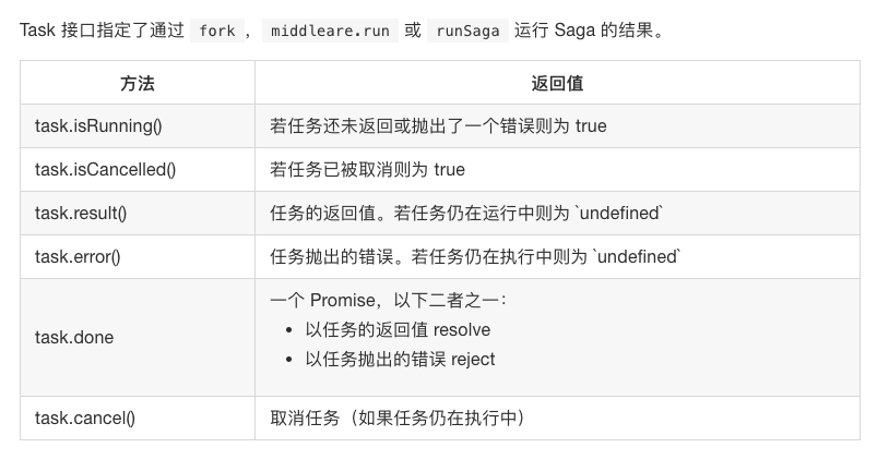 文档其实还介绍了race、组合Sagas、并发等高级技术,以后有时间、有需要再深入学习。要注意的是,中文文档与英文文档有一定差异,最好还是以英文文档为主。