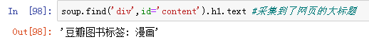 如果想爬取网页的大标题,则在soup.find('div',id='content').h1后加上.text