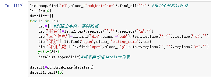 爬取到的漫画书信息处理过程代码如下: