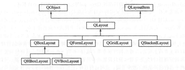 QLayout类是布局管理器的基类,是一个抽象基类,继承自QObject 和QLayou-tItem类,QLayoutItem类提供了一个供QLayout操作的抽象项目。QLayout 和QLayoutItem都是在设计自已的布局管理器时才使用的,一般只需要使用QLayout的几个子类即可,它们分别是QBoxLayout(基本布局管理器)、QGridLayout(栅格布局管理器).QFormLayout(窗体布局管理器)和QStackedLayout(栈布局管理器)。这里的QStackedLayout与第3章讲述的栈部件QStackedWidget用法相同,不再赘述。