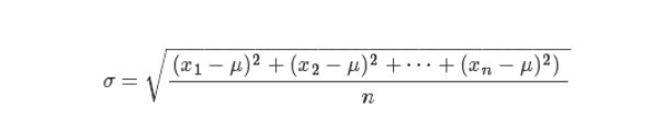 在这之前,就需要引入标准差(standard deviation)的概念,通常用小写希腊字母。σ(sigma,读 “ 西格玛 ”)。