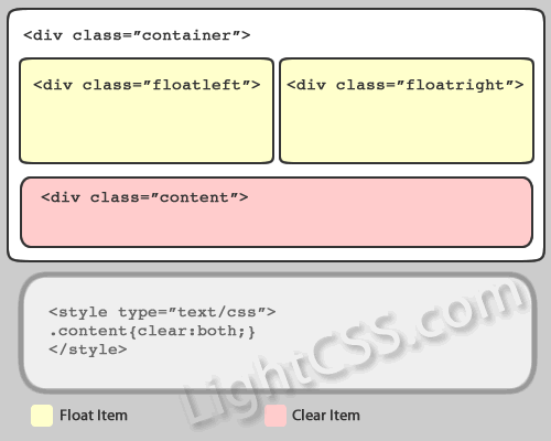 给浮动元素的容器也添加上浮动属性即可清理内部浮动。同overflow法一样无须添加额外的class,使用方便但是会对下面的文档造成影响。