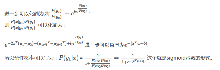 注:(1)同理也可以通过假设多个条件概率密度函数,也可以求得softmax形式。(2)为了便于推导方便这里假设协方差矩阵相同,不同的话也没有问题,不影响最终线性表达式的形式