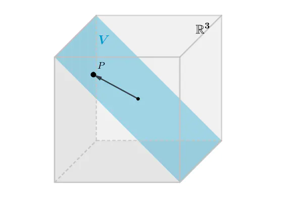 如图,P是一个三维向量,但是它也可以看成是在一个二维空间中,但是二维的向量不可能存在在三维或更高维的空间中,所以: