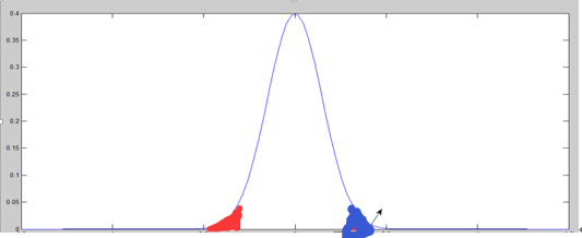 ,如果一次抽样的结果竟然落入了下图中左边的红色区域