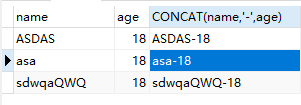 SELECT name,age, CONCAT(name,'-',age) FROM student;