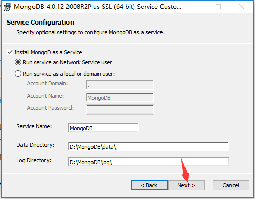 logpath=D:\MongoDB\data\log\mongo.log mongo.log这个会自动生成
