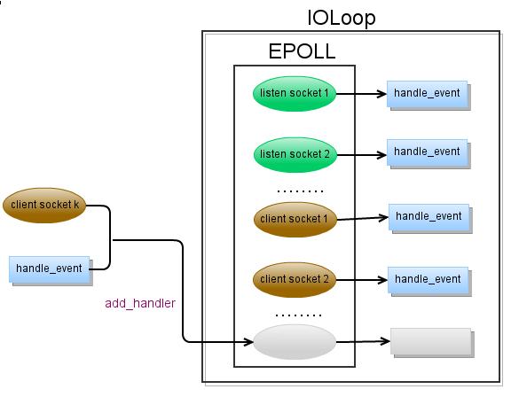 IOLoop来处理socket的读写事件, IOLoop基于epoll, 可以高效的响应网络事件. 这是Tornado