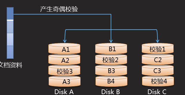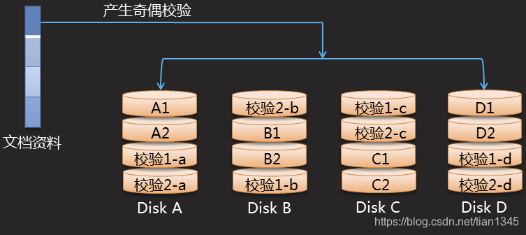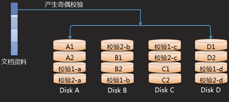 – 相当于扩展的RAID5阵列,提供2份独立校验方案