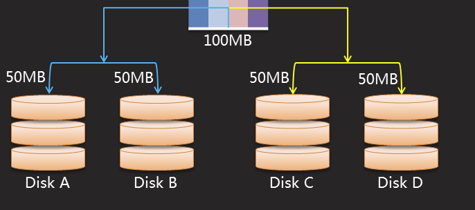 – 通过硬件/软件技术,将多个较小/低速的磁盘整合成一个大磁盘