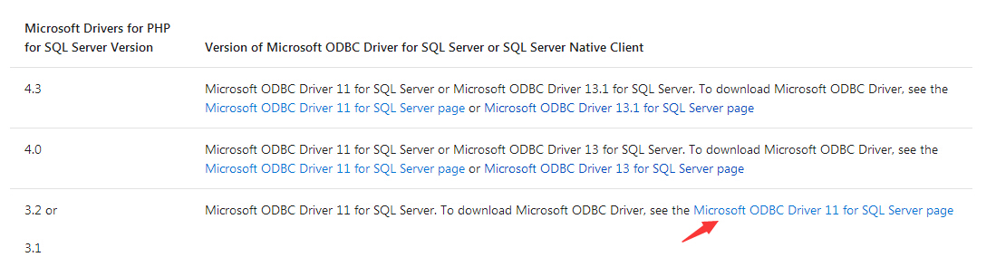 ?> 4、提示错误,少了 ODBC Driver 11 for SQL Server for x86 Failed to get DB handle: SQLSTATE[IMSSP]: This extension requires the Microsoft