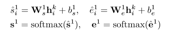的隐藏表示之后,首先在源语句中找到两个实体的开始和结束指针。将向量