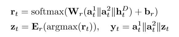 解码器的投影层将解码器输出映射到整个词汇表。然而在推断期间,解码器可以从词汇表中预测在当前句子或关系集或特殊标记中不存在的标记。为了防止这种情况,在投影层上应用softmax时进行mask,屏蔽词汇表的所有单词,但不包括当前源句标记、关系标记、分隔符UNK和EOS标记。要从softmax中屏蔽(排除)某些单词,将