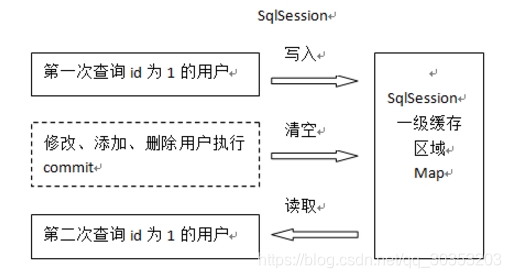 同一个sqlsession再次发出相同的sql,就从缓存中取出数据。如果两次中间出现commit操作(修改、添加、删除),本sqlsession中的一级缓存区域全部清空,下次再去缓存中查询不到之前的数据,所以要从数据库中查询,从数据库查询到再写入缓存中。