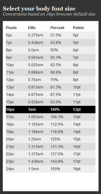 如果大家关注过Bootstrap的CSS的话,经常可以看见这种定义font-size: 62.5%;这个其实就是为了em的设置,之前说过了默认情况下16px = 1em.为了方便计算我们通常可以在body中声明font-size:62.5%;这样的话就变成16px * 0.625 = 1em,也就是px只要除以10就可以换成em单位了.