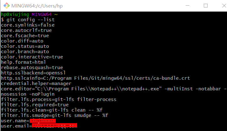 注意:git config --global 参数,有了这个参数,表示你这台机器上所有的Git仓库都会使用这个配置,当然你也可以对某个仓库指定的不同的用户名和邮箱。