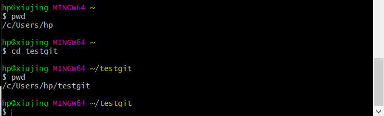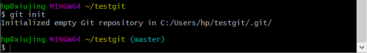 所以创建一个版本库也非常简单,如下我是C:\Users\hp 目录下新建一个testgit版本库。