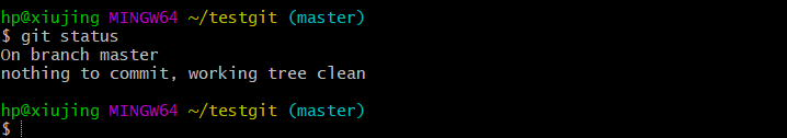 现在我们已经提交了一个readme.txt文件了,我们下面可以通过命令git status来查看是否还有文件未提交,如下: