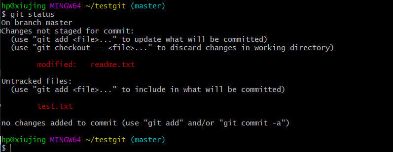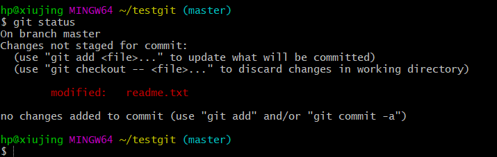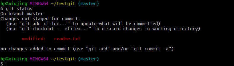 上面的命令告诉我们 readme.txt文件已被修改,但是未被提交的修改。
