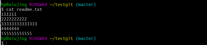 我在版本库testgit目录下新建一个记事本文件 readme.txt 内容如下:11111111