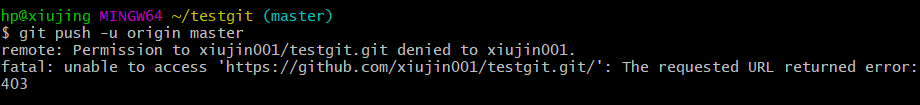 现在我想把本地更新的readme.txt代码推送到远程库中,使用命令如下: