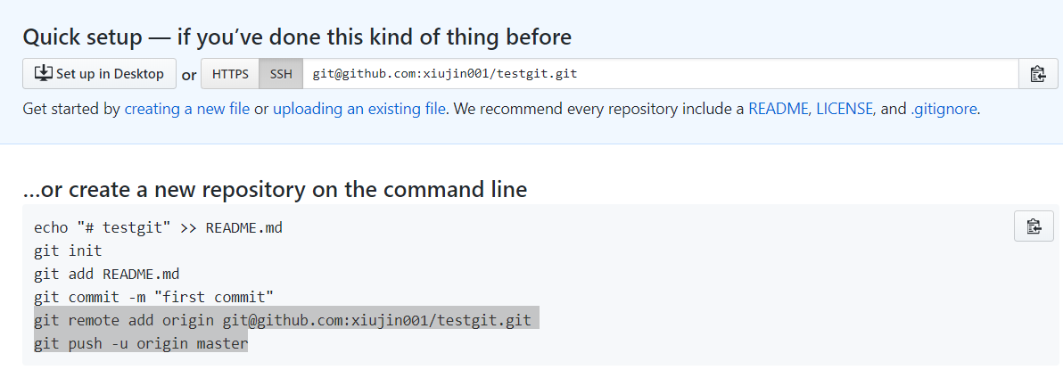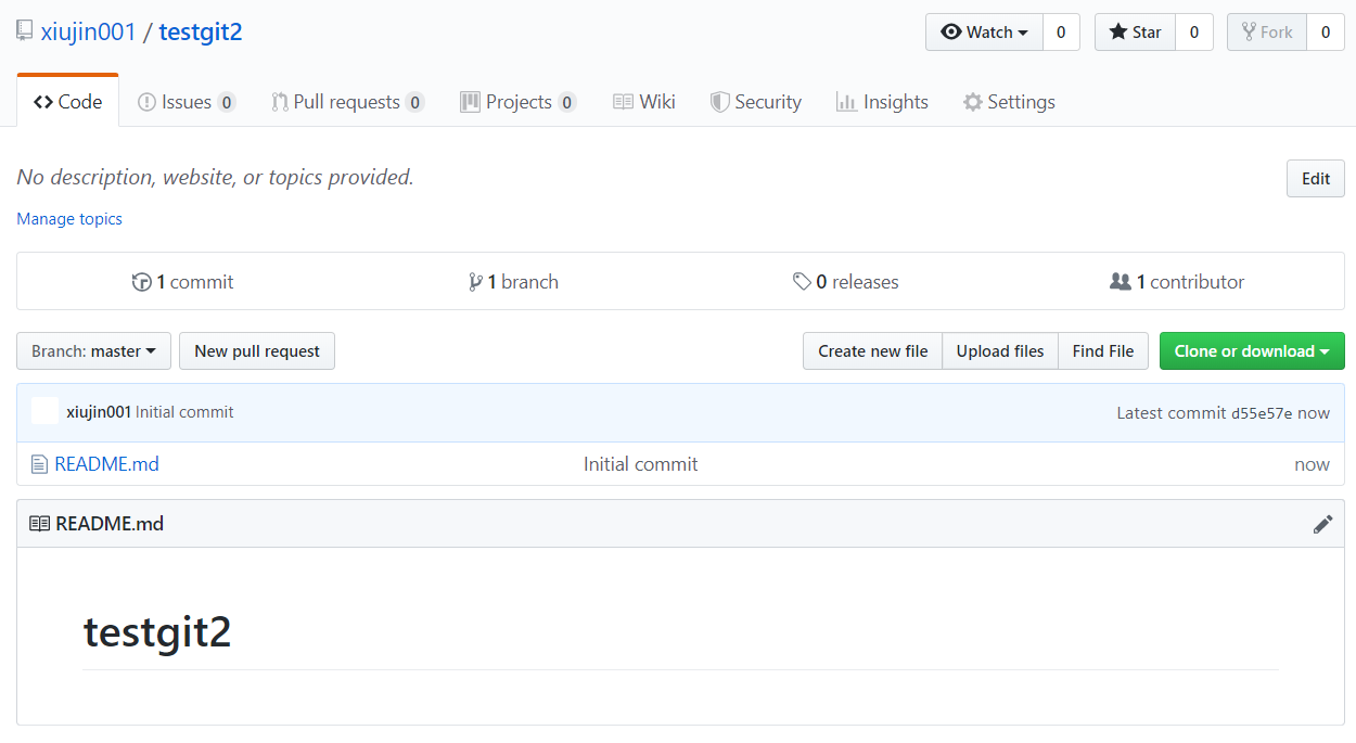 多人协作时,大家都会往master分支上推送各自的修改。现在我们可以模拟另外一个同事,可以在另一台电脑上(注意要把SSH key添加到github上)或者同一台电脑上另外一个目录克隆,新建一个目录名字叫testgit2