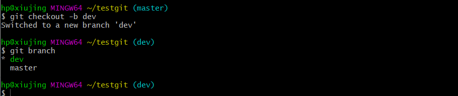 git checkout –b dev 创建dev分支 并切换到dev分支上