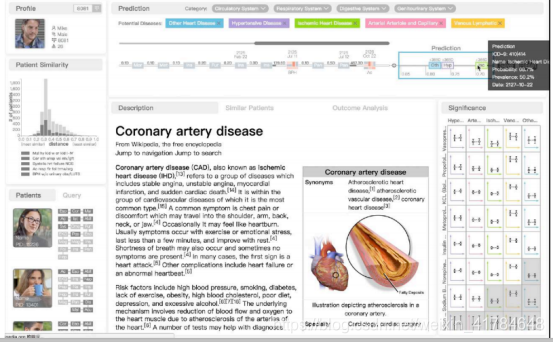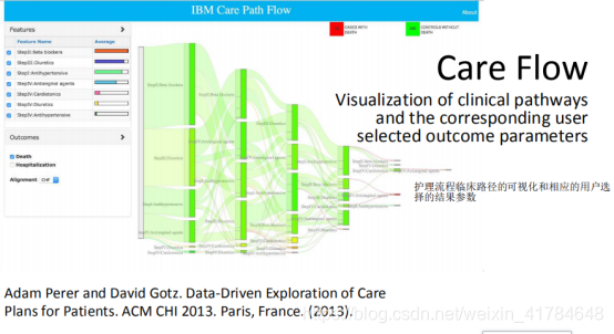 本篇博客用于记录本人听取IGAL九期班曹楠老师报告的学习记录。曹楠老师的报告主要讲述的是《可视化在医疗信息上的应用》(Visualization in Health Informatics)。在2011年的美国国家医学报告中指出:相比其他技术的发展,可视化在医疗领域的发展尤为落后。传统的医疗可视化的应用有X-Ray、CT、模拟手术(VR和AR)等,但可视化在医疗领域存在缺失,如电子病历、看一个人的精神是否正常可以通过他的社交信息来分析等,一些医疗领域的信息在可视化上没有很好的应用。进而,曹老师提到了由美国率先提出的具有跨时代意义Health 2.0的概念,从而进入本次课程的主题。