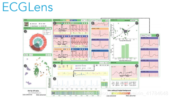 由于心点图的数据量的巨大,一秒十二次,使得这样的数据医生无法去读完,故此曹老师的研究通过深度学习的方法,将有问题的心电图从大量的数据中摘出来,然后用可视化的方法展现出来,让医生更好的去标记有问题的心电图的片段。