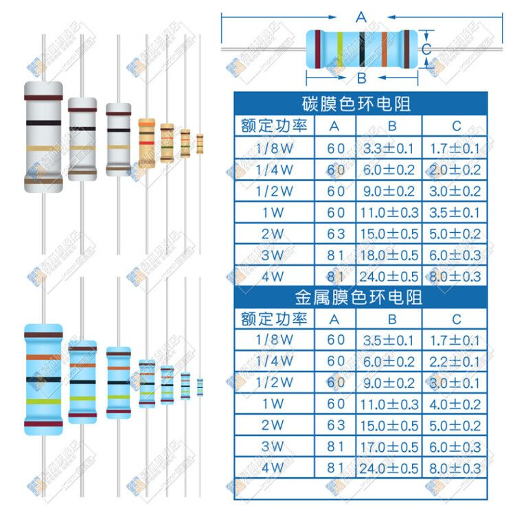 以下这个图很形象告知一般维修电阻属于多少w的电阻。 色环电感的默认是微亨uh 、电感并联时总电感量的计算 同样,电感并联与电阻串联时的计算公式也是相似的,电感并联时,总电感量减少。其变化规律用公式可以表示为 1/L并=1/L1+1/L2+1/L3+1/L4+…… 所以,电感并联计算公式 L并=1/(1/L1+1/L2+1/L3+1/L4+……) 来源:https://blog.csdn.net/hu5566798/article/details/99558454 标签 电感 色环 色环电感 并联电阻 电阻