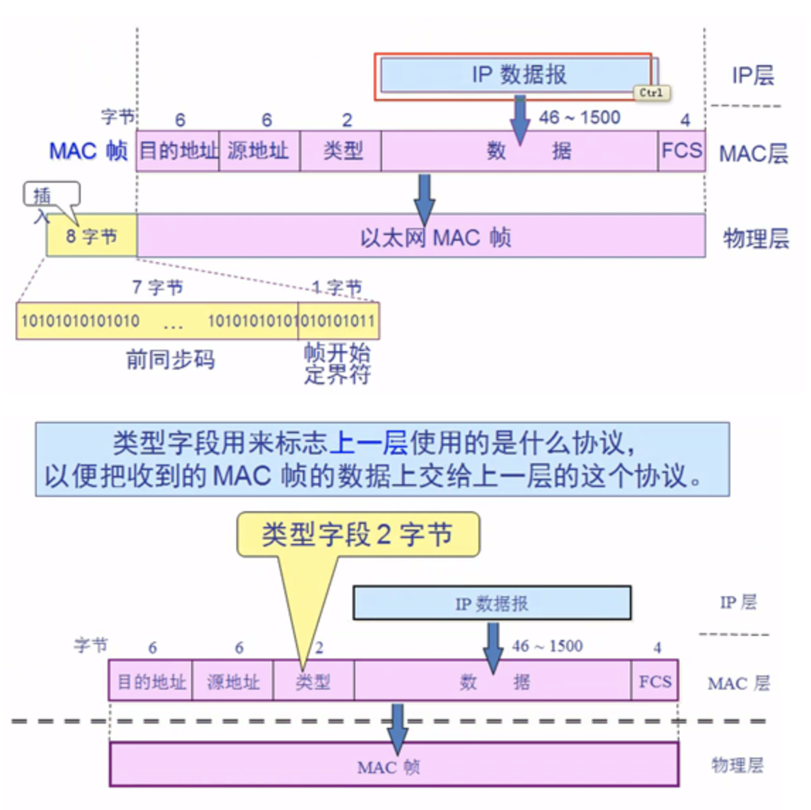 4 使用广播信道(以太网只要不是使用全双工就使用csma/cd协议举例)的数据链路层
