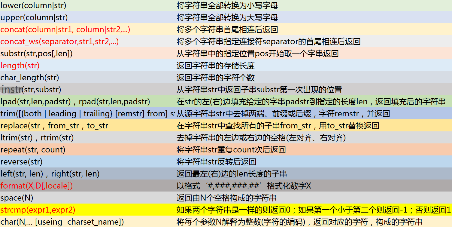 INSERT(str,pos,len,newstr) 示例:SELECT INSERT('情侣在聊天',3,0,'XXXXX');//(源字符串,起始位置,替换长度(为0不替换),替换内容