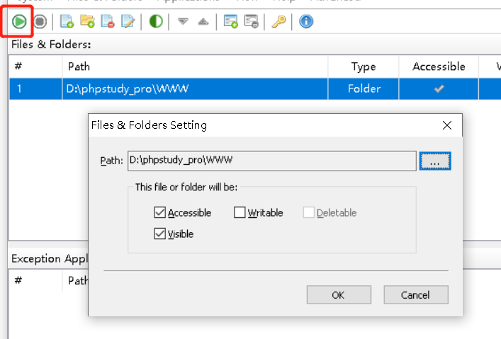 按照下面的图,锁定phpstudy的目录设置可读不可写,然后点红框的按钮启动!