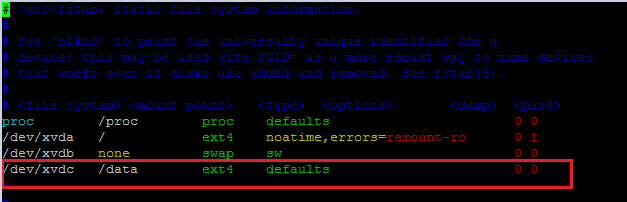 方式二:fstab,这种方式每次系统启动时就会根据fstab里的信息自动进行挂载