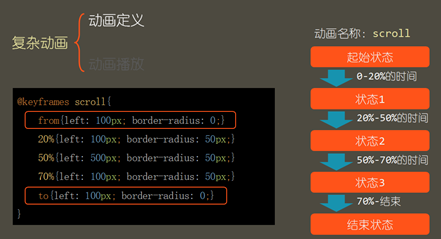 @keyframes 名字(自己取一个名字){ ——>定义一个动画}