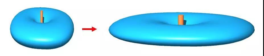 根据能量守恒原理,能量既不会增加也不会减少,如果要提高水平方向的发射能量,就要削弱垂直方向的能量。因此就只有把标准半波阵子的能量辐射方向图拍扁了,如下图所示。