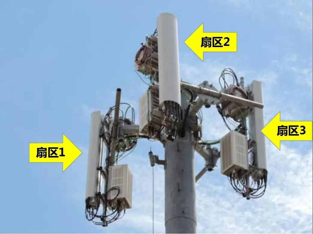 从上图我们可以清楚地看出,这个基站由三个扇区组成,用了3个射频单元,也就需要三副定向天线来实现。
