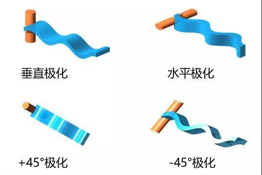 如果电场的方向和地面成45°夹角,我们就其称为±45°极化。
