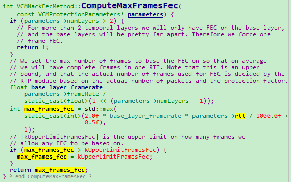 参见:VCMNackFecMethod::ComputeMaxFramesFec