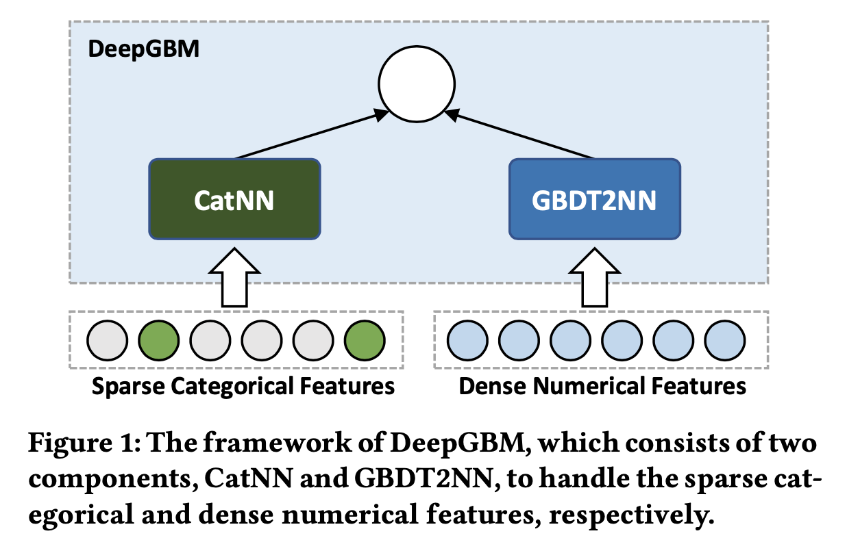 1. DeepGBM的framework如下图,主要包含CatNN和GBDT2NN;