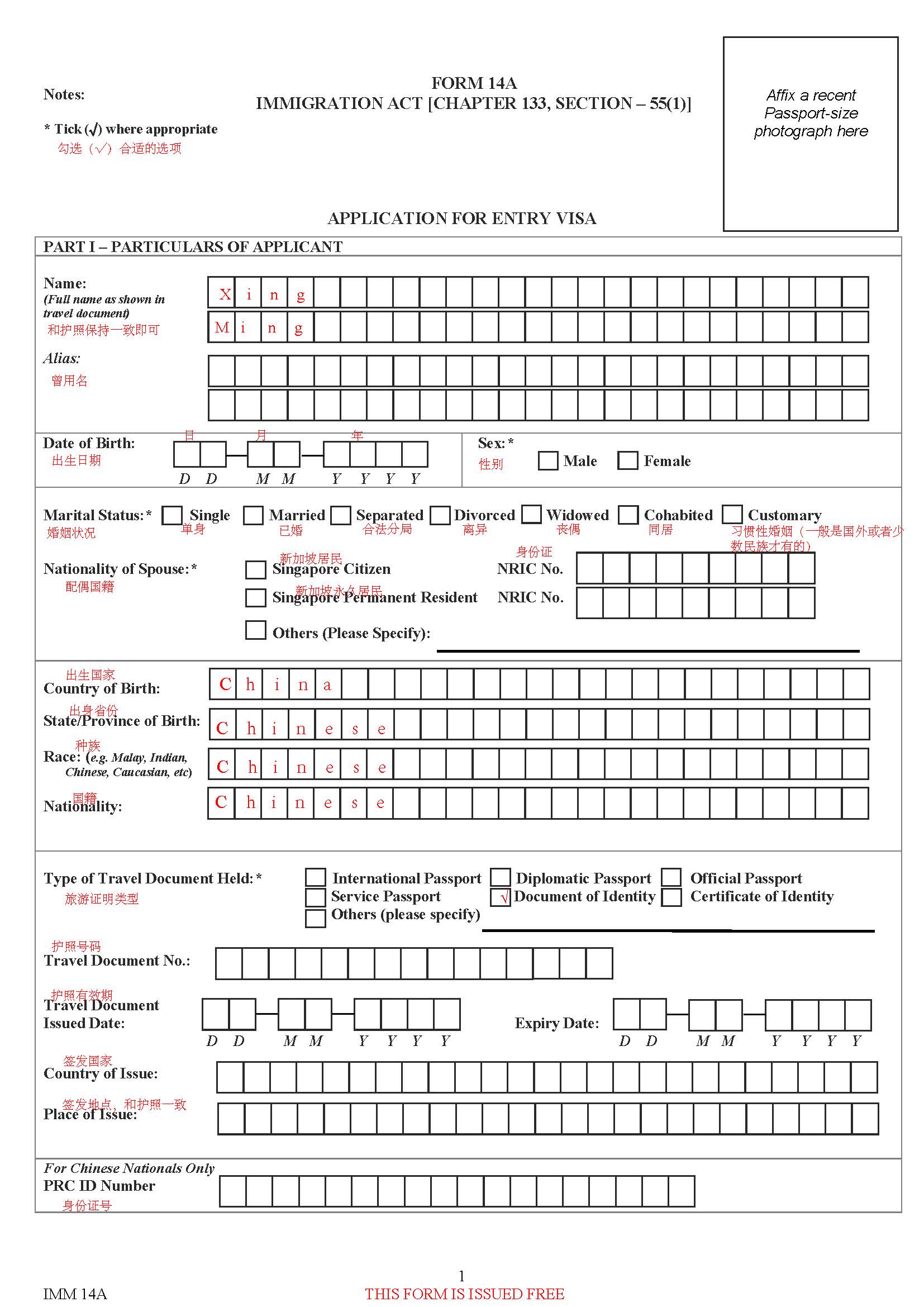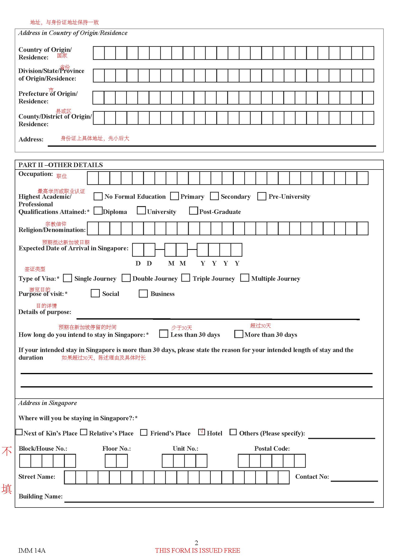 最近申请了新加坡的旅游签证,在填写过程中有遇到一些不太确定的部分,咨询了代理机构,特附上签证申请表及翻译,希望能有所帮助 来源:CSDN作者:yyyyllllxxxx链接:https://blog.csdn.net/yyyyllllxxxx/article/details/103647391 标签 签证