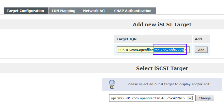 Target iqn.2006-01.com.openfiler:tsn.69a7e332255a