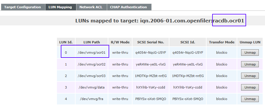 #iqn.2006-01.com.openfiler:racdb.ocr01 ALL