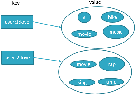 如上图,有两个key,分别为用户1和用户2的爱好。