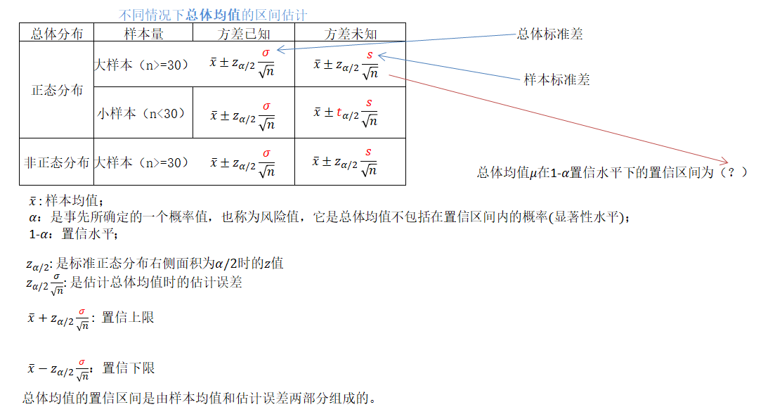 区间估计:是在点估计的基础上,给出总体参数估计的一个区间范围,该区间通常由样本统计量加减估计误差得到。