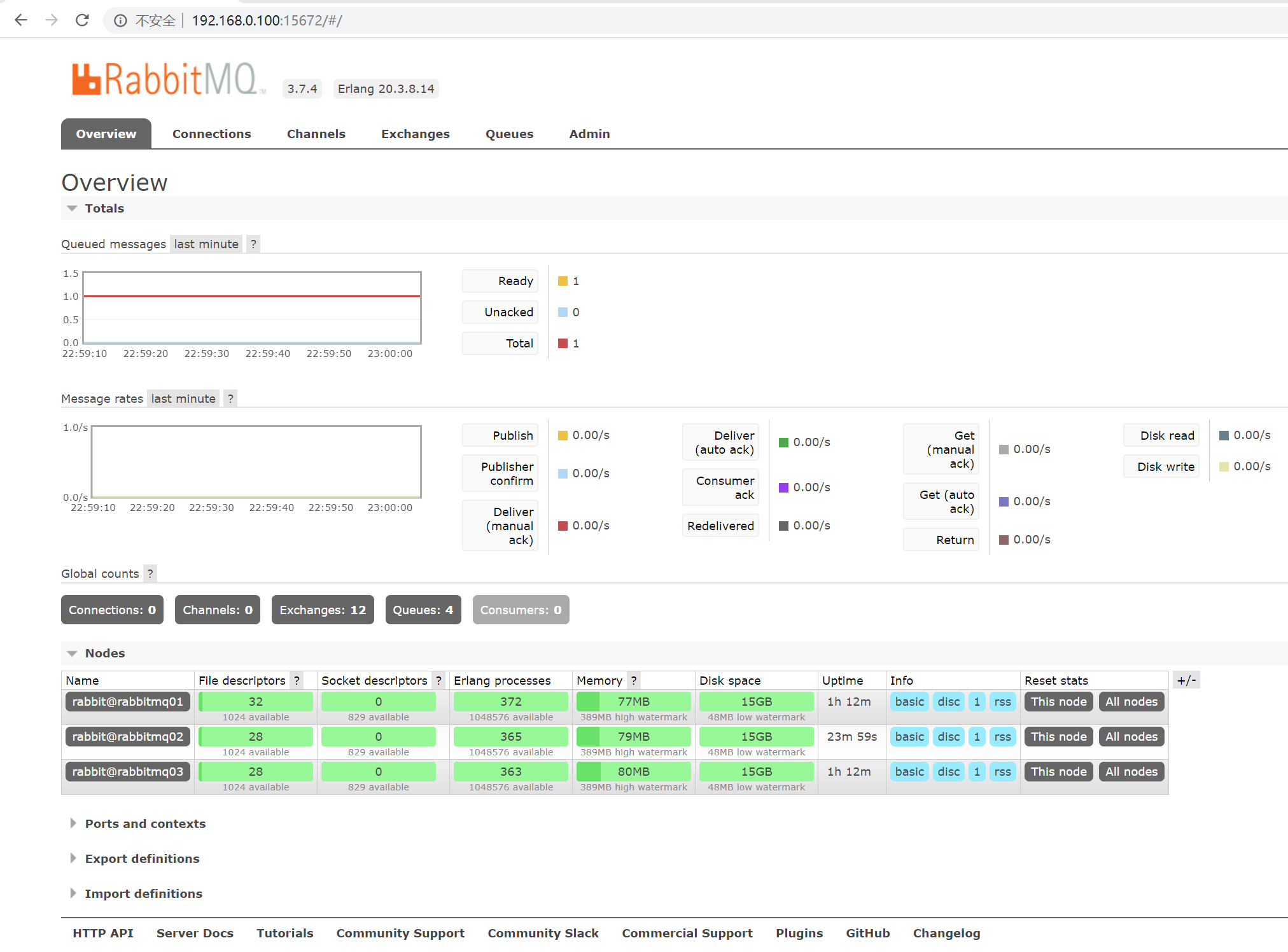 | RabbitMQ磁盘节点-01 | 192.168.0.101 | 5672 |