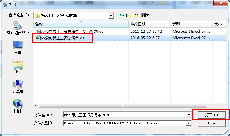 第四步:选中要处理的公司员工工资总清单的,出现以下对话框