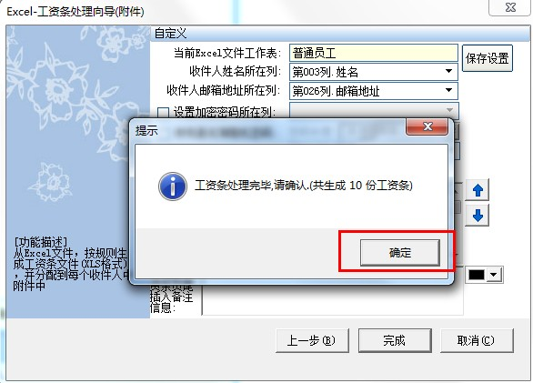 第七步:等提示工资条处理完毕后,即完成了要发送的工资条的自动制作