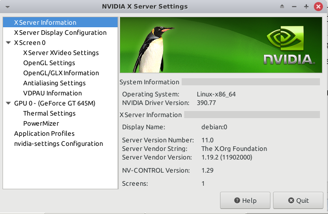 除了这个方法验证,还有NVIDIA X Server Settings 程序是否如下显示而不是只打开的时候出现未加载提示并只显示两行