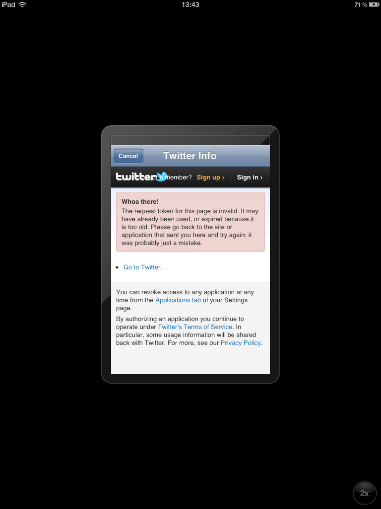 Please note that this is before we even get to OAuth or anything API... This occurs in the modal web view that pops up to "authorise" the application with your login.